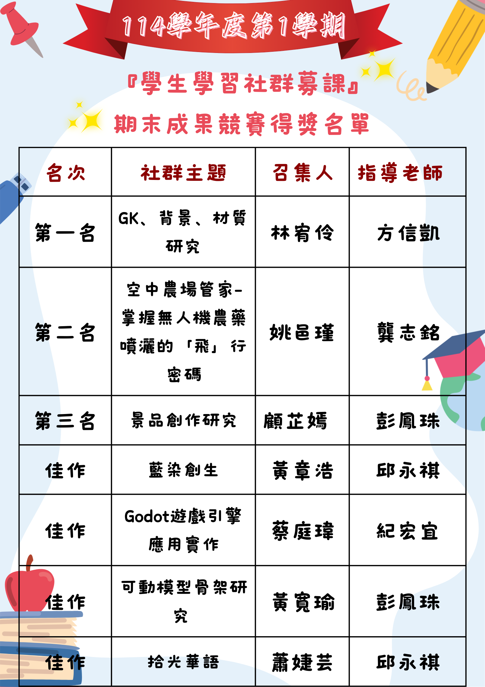 114學年度第1學期『學生學習社群募課』期末成果競賽結果公告
